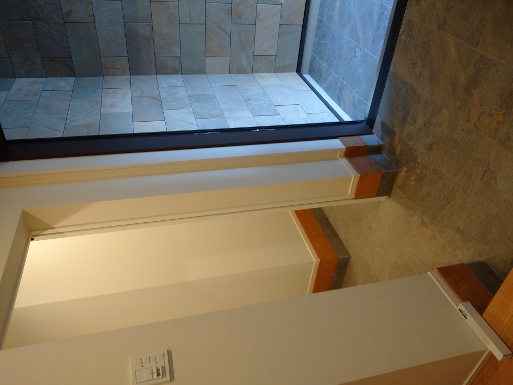 玄関周りをタイル張りにしたカッコイイ外観です。