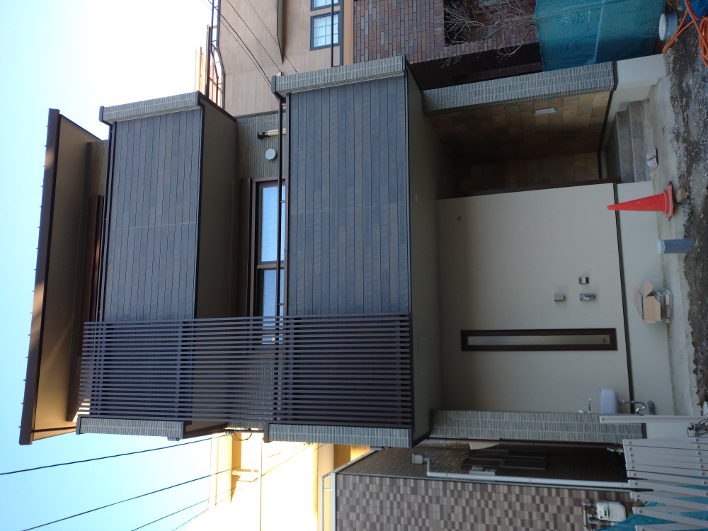 外壁にサイディング、吹付、タイルと多種材を使用していますが、カッコ良く納まったと思っています。