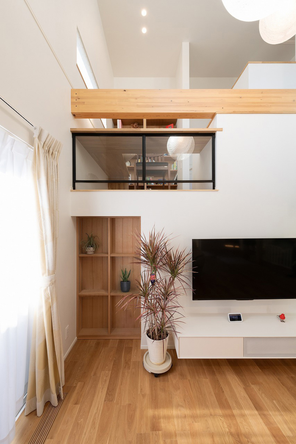 ホーム フォトギャラリー 注文住宅 2階建て 光と風が巡る、家族の笑顔が響き合う豊かな暮らし 光と風が巡る、家族の笑顔が響き合う豊かな暮らし 西京区I様邸 注文住宅|2階建て 外観は淡い色でまとめ、柔らかな印象を与えています。淡い色をベースに、軒天や玄関ドア、フェンスには明るい木目をアクセントとして取り入れることで、温かみを持たせつつメリハリのあるデザインに仕上げました。画像のみを表示全 12 枚中 1 枚目を表示Next ≫ 玄関は道路に面さないように配置し、プライバシーに配慮した設計に。広々とした玄関ホールにはお施主様お気に入りのアートパネルが飾られています。内観はナチュラルなテイストで統一し、リビングに繋がる扉はハイドアを採用することで、空間に奥行きを感じさせます。玄関横にシューズクロークを設け、常に玄関をすっきりと見せることができます。画像のみを表示全 12 枚中 2 枚目を表示≪ Prev|Next ≫ ダイニングキッチンの上部には下がり天井を設け、リビング空間と緩やかに仕切りつつ、空間に変化を持たせています。キッチンは開放感のあるペニンシュラ型を採用し、ダイニングを横並びに配置することで、家事がしやすい動線にしました。画像のみを表示全 12 枚中 3 枚目を表示≪ Prev|Next ≫ LDKから畳コーナー、ウッドデッキまでを段差のないデザインにする事で、視線が遮られずに部屋全体がより広く開放的に見えるようにしました。畳コーナーにはロールスクリーンを設置しており、必要に応じて空間を仕切ることが可能です。ロールスクリーンは折り上げ天井に収納できる仕様のため、使用しないときにはすっきりと片付けられます。ウッドデッキには目隠しフェンスを設置しており、外からの視線を気にすることなく、リラックスして過ごせる空間となっています。画像のみを表示全 12 枚中 4 枚目を表示≪ Prev|Next ≫ スキップフロア下には大容量収納スペースが広がります。この収納は、家族の備蓄品や季節用品をたっぷりと整理して保管できる便利な空間となっています。画像のみを表示全 12 枚中 5 枚目を表示≪ Prev|Next ≫ 収納の入り口には一見、扉には見えないスライド形式の棚を採用しました。グリーンやインテリア小物などを飾ることができる隠し扉になっています。画像のみを表示全 12 枚中 6 枚目を表示≪ Prev|Next ≫ 畳コーナーはグレー色の畳を使用することで、和モダンな印象にしています。収納は吊押入れを採用し、視線が抜けて空間が広く感じられます。画像のみを表示全 12 枚中 7 枚目を表示≪ Prev|Next ≫ 開放感たっぷりの吹き抜けに面したスキップフロア。吹き抜けからは明るい光が注ぎ込み、家全体を明るく照らします。キッズスペースやデスクワークのスペースとしても使うことができるのも便利。また、吹き抜け越しにLDK全体を見渡せるため、家族のつながりを感じられる空間です。画像のみを表示全 12 枚中 8 枚目を表示≪ Prev|Next ≫ 2階ホールからの吹き抜けスペースは窓からたくさんの光を採り入れています。全館空調を採用しているため、家全体の室温も均一に保たれて快適な空間となっています。画像のみを表示全 12 枚中 9 枚目を表示≪ Prev|Next ≫ 寝室に面する書斎は、ご主人の本やコレクションが並ぶプライベート空間です。部屋全体的に温かみのある色を採用し、カウンターと棚はダークブラウンで、ヘリンボーンの床材が特別感を与えます。画像のみを表示全 12 枚中 10 枚目を表示≪ Prev|Next ≫ 子供部屋は黄色の壁紙と、カーテン生地の色合いを合わせて、明るくかわいらしい印象にしています。画像のみを表示全 12 枚中 11 枚目を表示≪ Prev|Next ≫ トイレは深い色調で統一。アクセントタイルと柔らかな照明が、落ち着いた空間を引き立てています。画像のみを表示全 12 枚中 12 枚目を表示≪ Prev 一覧へ戻る 注文住宅 集合住宅・公共施設など 店舗 ビル・マンション 施設 すべて 2階建て 3階建て 狭小住宅 SE構法(重量木骨の家) 二世帯住宅 店舗付き住宅 すべて マンション・集合住宅 公共施設 医療福祉施設 商業施設 すべて すべて すべて