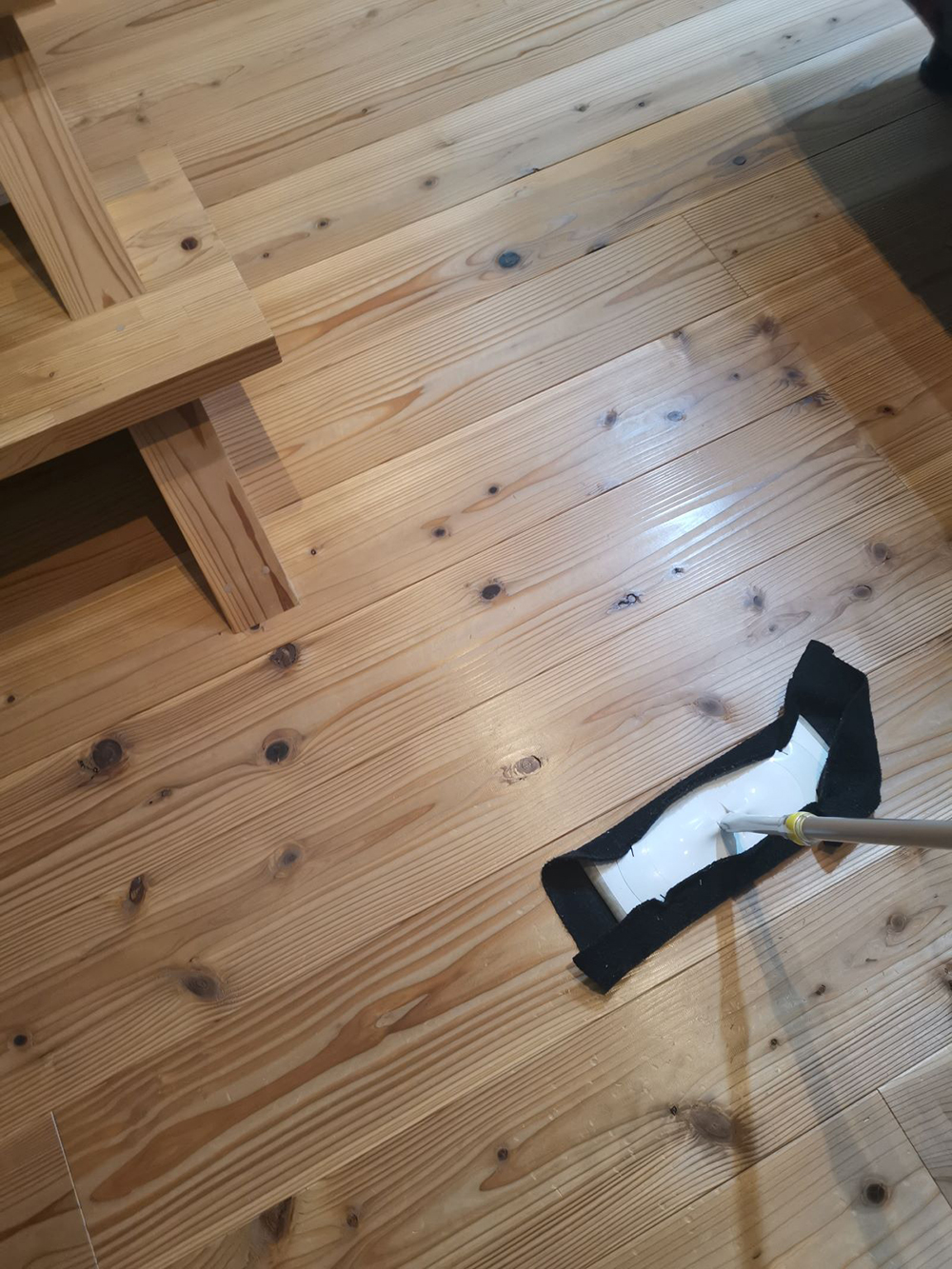 人が歩いたり、掃除で乾拭きしたり、そういうのがどんどん床にツヤを与えてくれます。