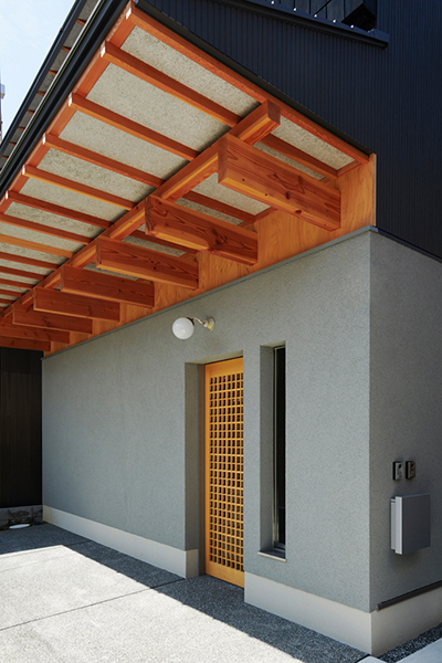黒とグレーの壁面に深いひさしが映える、印象的なデザインに仕上げてくださいました。