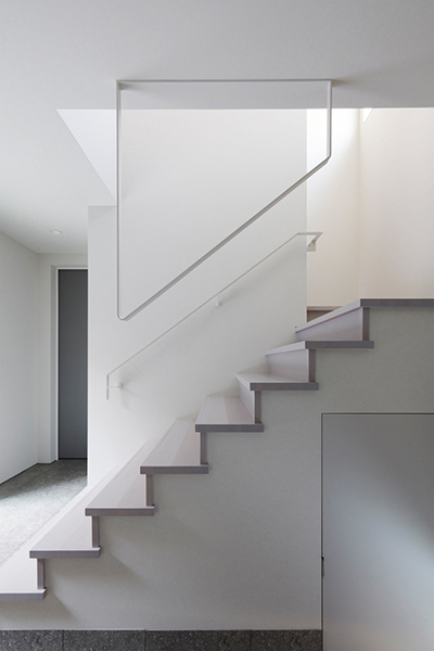 中庭からの柔らかい光を、白の壁とエントランスから続くグレーのタイルで受けて、明るいながらも落ち着いた空間に。
